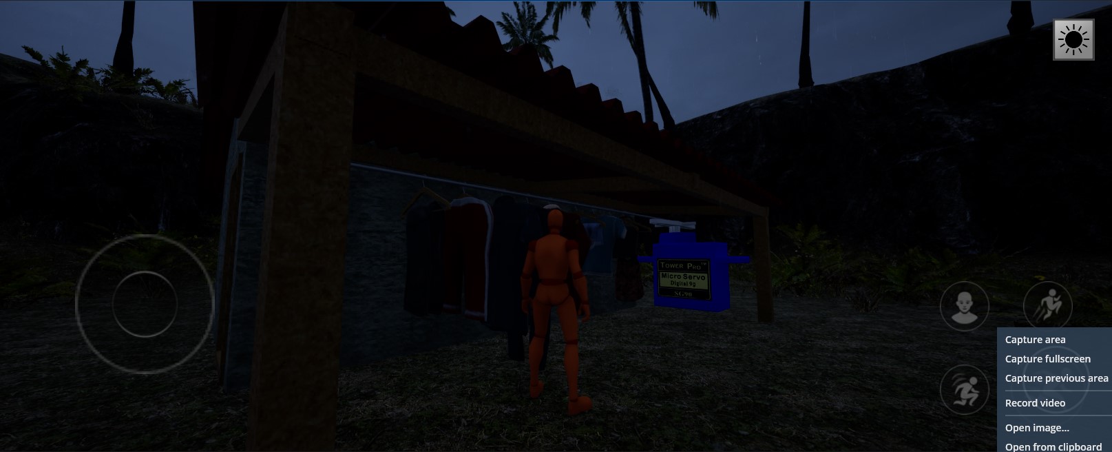 This is a semi-simulation smart home game where players design and manage a DIY rain-detection system using real electronics logic. Using an ESP8266 microcontroller, rainwater sensor, and a servo motor, players must automatically protect outdoor hanging clothes from the rain before they get wet.